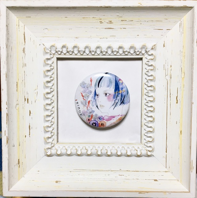透明水彩によるsiouxの少女画・イラストの缶バッジです。 (※写真の額装は含まれません) [私の好きなあの子01 The girl who I like 01] サイズ:直径56mm